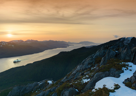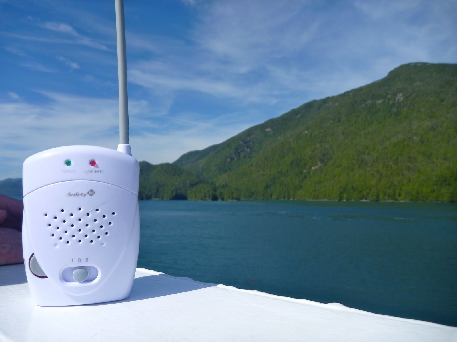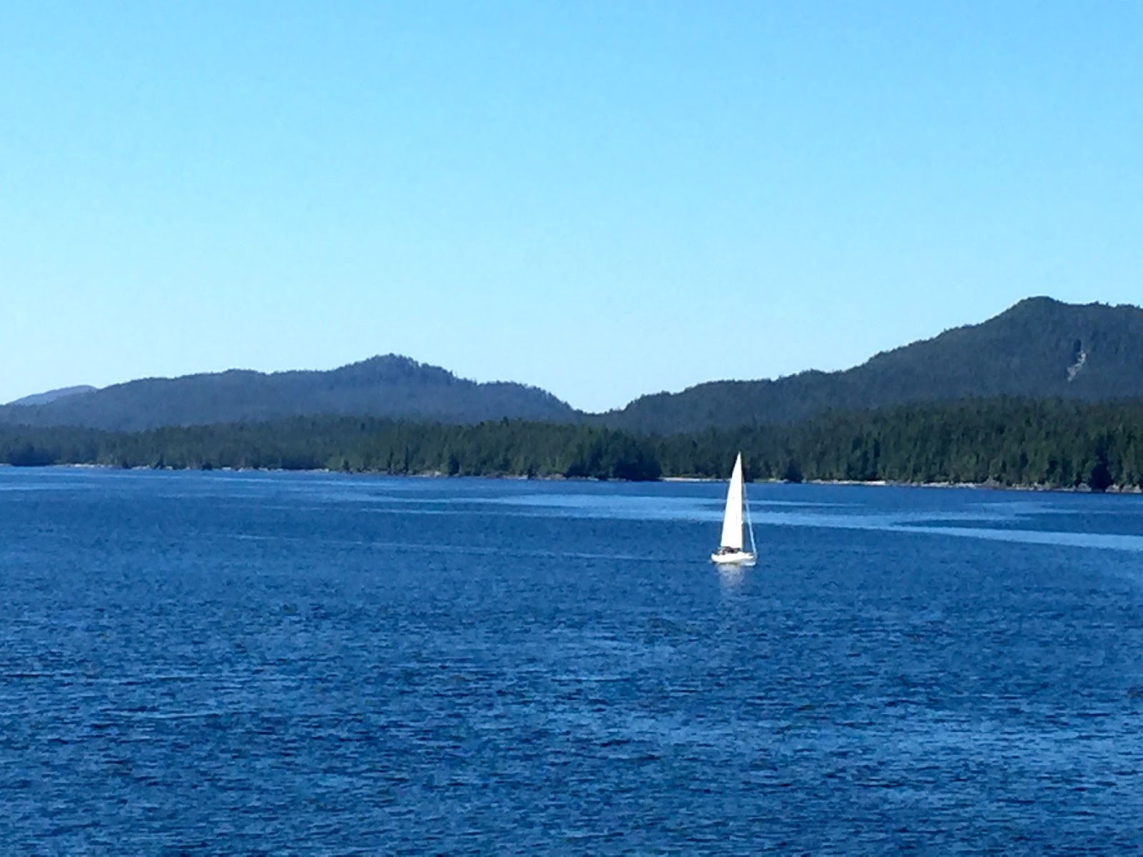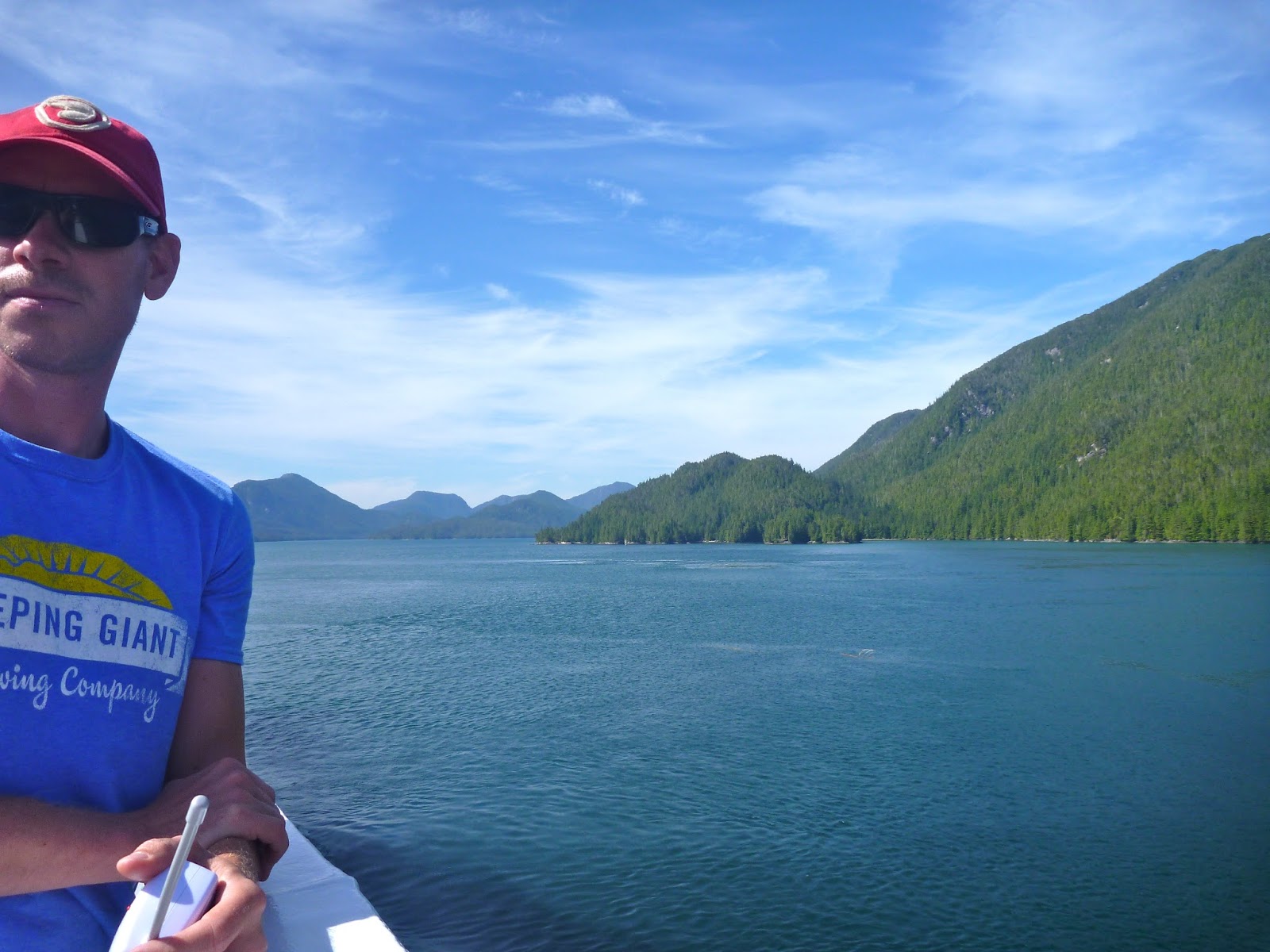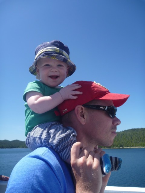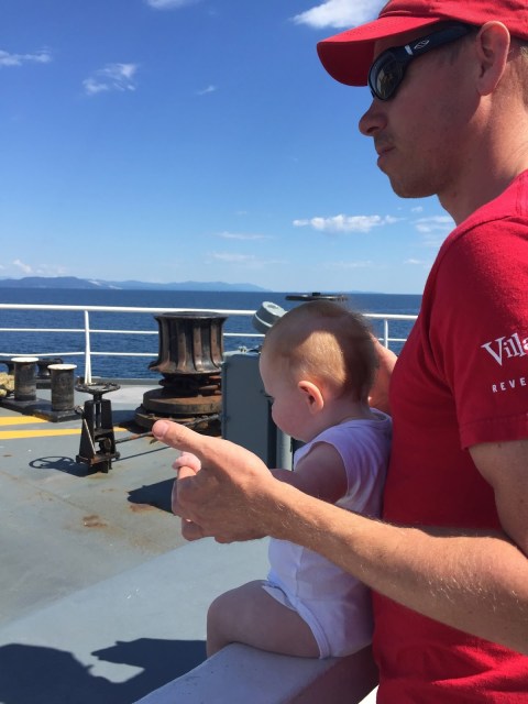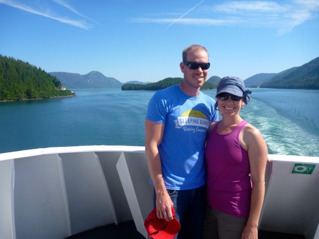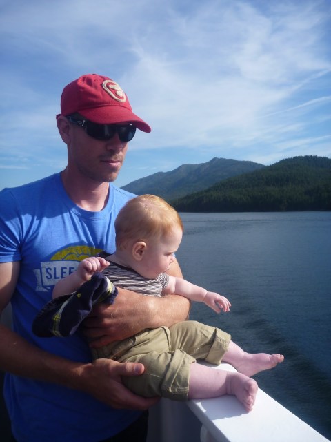 Once aboard the Northern Expedition, BC Ferries’ newest vessel, we quickly realized why our tickets had been so pricey! It was like a giant, luxurious cruise ship equipped with amazing viewing decks, multiple restaurants, a theatre and shops. We checked into our little cabin and put Henry down for nap in his tent. He quickly went to sleep lulled by the noise of the engines and the rocking of the waves. Thankfully, our baby monitor worked quite well and Blake and I were able to explore the ship and relax on the viewing decks in the sun. Blessed with a cloudless blue sky, warm temperatures and a refreshing breeze, we spent a blissful day watching for wildlife, gazing at the gorgeous scenery and just relaxing on the deck.