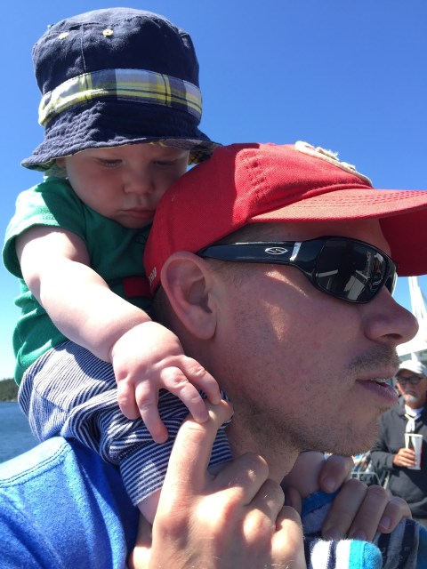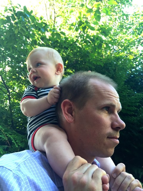 | Henry always has the best view from Daddy’s shoulders |