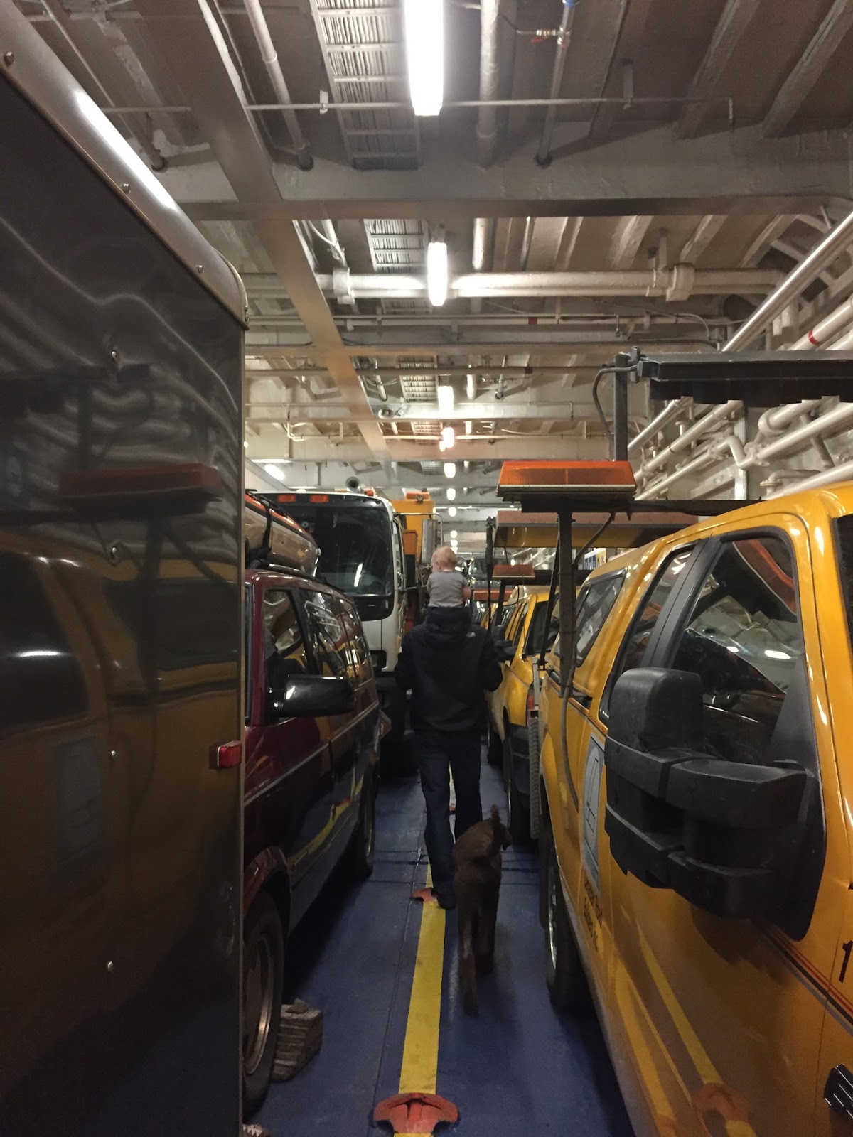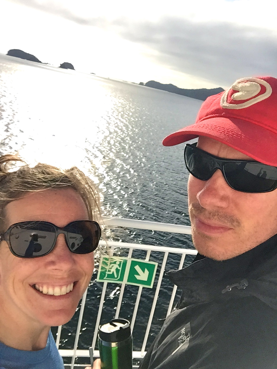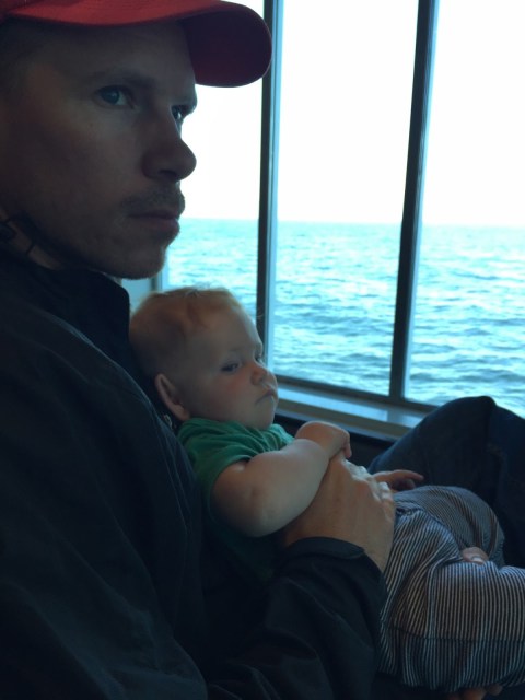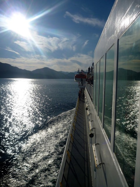 Blake jumped out of the car and sprinted towards the ticket counter. It was 7:11am and apparently they stopped printing tickets at 7:10am. Somehow Blake persuaded them to issue us our tickets anyway and we gunned the car towards the ramp, where the very last cars were being loaded into the belly of the great ship. “Don’t you just love it when we are running behind and you actually catch your sailing!”, exclaimed the attendant as he inspected our tickets. At 7:33am, we had been loaded onto the boat. We were the VERY LAST CAR to get on! Whew! What a relief!