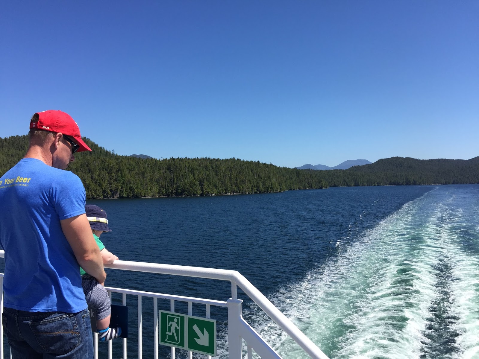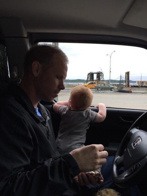 In preparation for our big adventure on the Inside Passage, Blake had called BC Ferries ahead of time to confirm when we had to check in at the ferry terminal. Thirty-minutes prior to the sailing is what they had told him. So that morning, Henry awoke at his usual 5am start and off Henry, Ada and I went for a stroll along the quiet streets of the small port. Thankfully, we found a small diner and the baker let us in pre-opening in for a coffee and a hearty egg breakfast while the baker cooed at Henry. Taking our time, we headed back to the motel to get Blake up. By this time it was about 6:30am but our ferry sailing time was 7:30am and the terminal was only a few minutes away, so there was no need to panic. By 6:55am, we were in the car on our way. Unusually, there we no other cars headed to the ferry terminal. Hmm… We arrived at the gate at 7:05 where the attendant greeted us in surprise. “Do you have a reservation for the sailing today?”, he asked. We nodded, starting to feel a bit worried. “Well, you were supposed to check-in 2 hours ago! If you’re lucky, you just might be to catch the ferry if you’re able to still get your ticket before they finish loading up!” YIKES! My heart started to beat faster. We COULDN’T miss this ferry! It was by far the most expensive part of our trip and there is no way we could’ve been able to re-book so late in the tourist season.