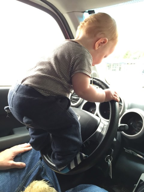 | Henry’s new favourite thing – ‘helping’ Blake to drive |