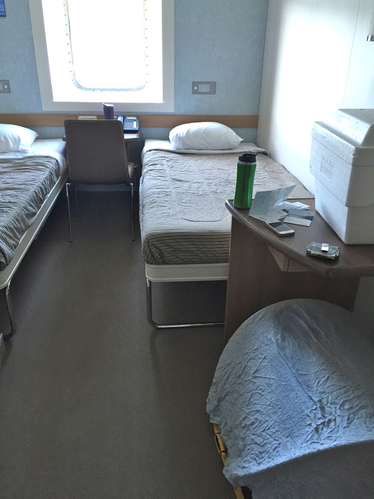 | Henry having a nap in his tent in our cabin aboard the Northern Expedition |