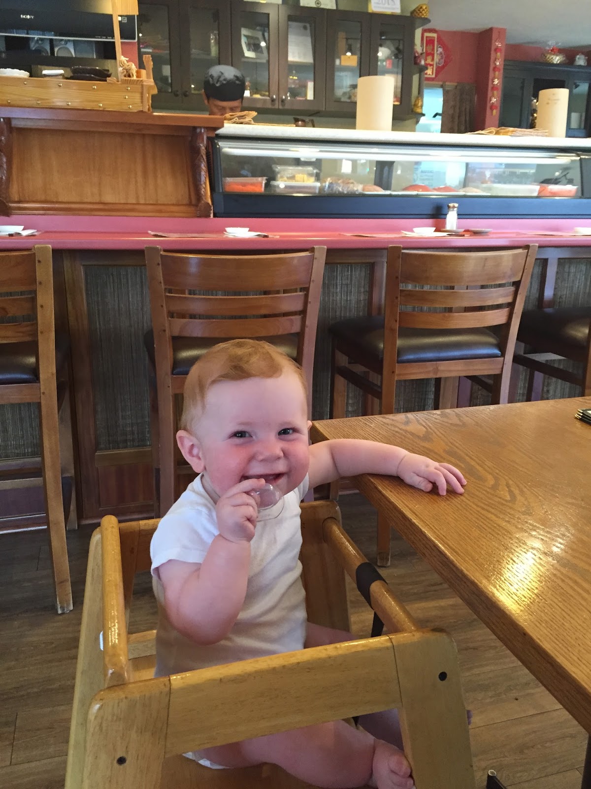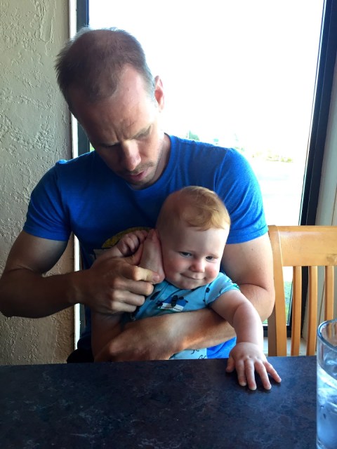 | Trying to entertain Henry while we wait for our food at the restaurant |