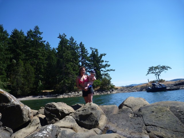 The next morning, we were all feeling much better. We loaded up the car and made a beeline out of the concrete jungle of Richmond BC. Scheduled to make the ferry from Tsawassen to Galiano Island later that afternoon, we spent the hot summer day at a local beach where Ada ran off some steam and we had a chance to dip our toes into the salt water. After a quick lunch of salmon burgers (we were so excited to eat BC salmon again!), we headed out to the Tsawassen ferry terminal where we sweated it out waiting to be loaded onto the ferry.