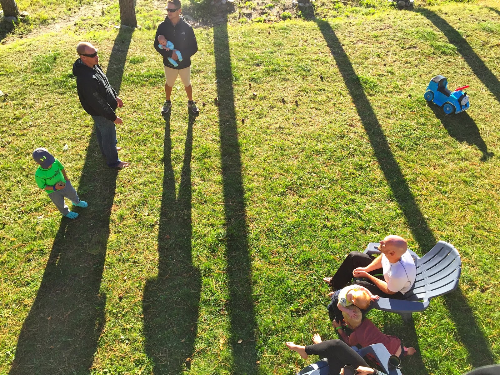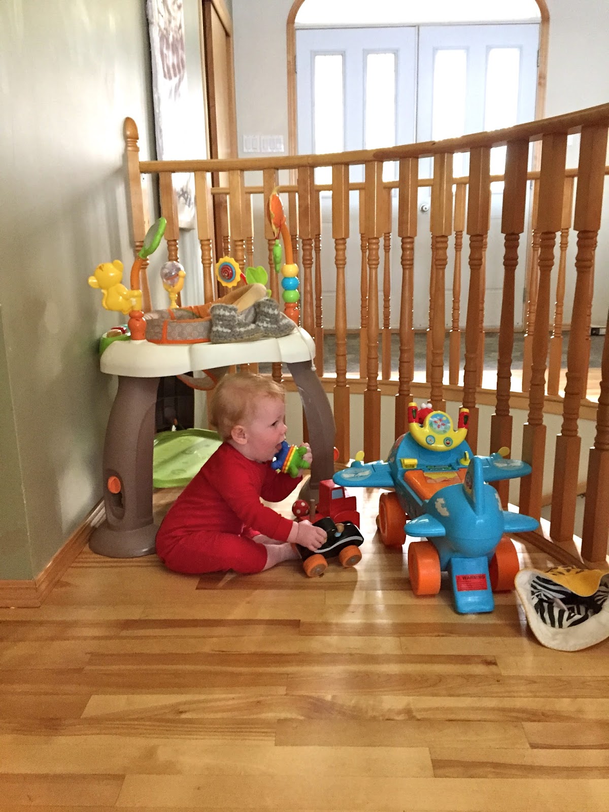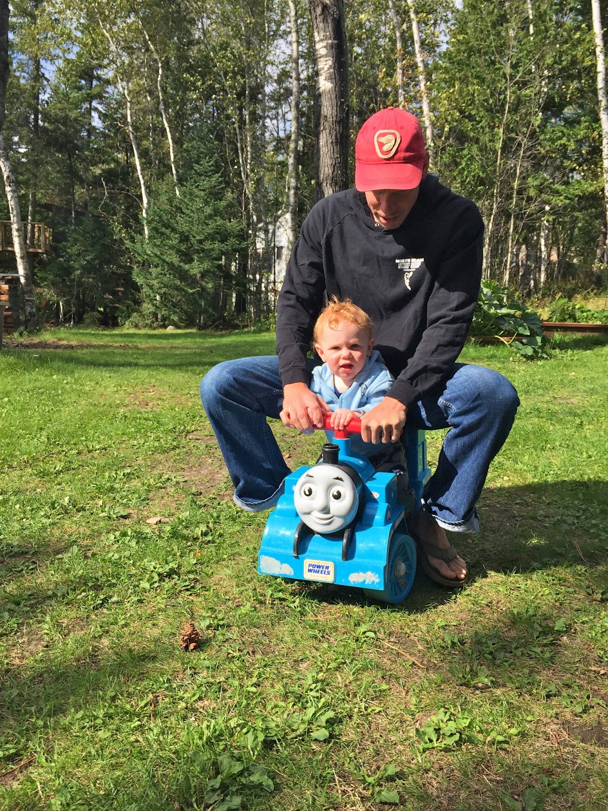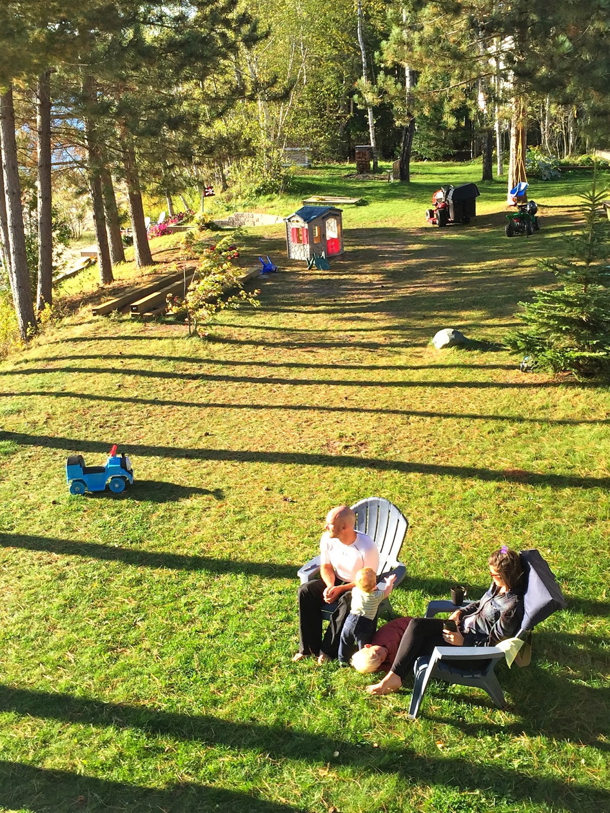 Fall is by far my favourite time of year, and so far, we haven’t been disappointed. We’ve been so lucky to have had many warm afternoons playing in the yard surrounded by beautiful fall colours contrasted by the sparkling blue lake. Henry is much more independent in his play now and loves to crawl around in the grass, inspecting pine needles, pinecones and other interesting finds. He’s also been lucky enough to have access to all of Brooks’ and Hunter’s toys. His favourite is a Thomas the train that he can sit on and drive around the yard. After a few weeks of one of us driving for him, Henry all of a sudden discovered how to push the button himself and away he went! Unfortunately, he still hasn’t mastered steering so it involves us chasing him around the yard so that he doesn’t crash! I was dying laughing the first time he did it, as he didn’t seem at all surprised or excited that he was self-zooming around the yard! Henry has also started to stand unassisted without holding onto anything, so I think that walking is not too far off now. He loves to charge around holding onto your hands or pushing a chair and he is CONSTANTLY on the go, so it will come as no surprise if one of these days (very soon) he just starts running around on his own!