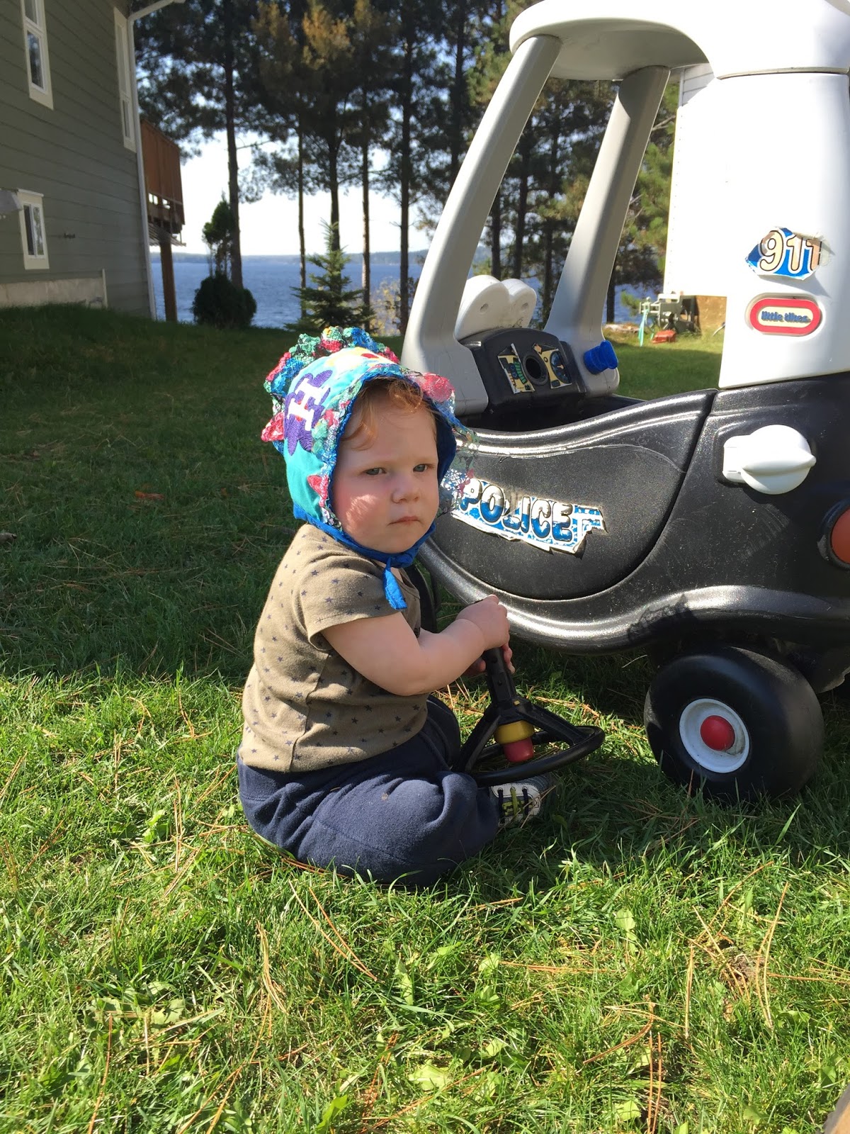 Henry playing mechanic in his ‘Hank’ bonnet 🙂