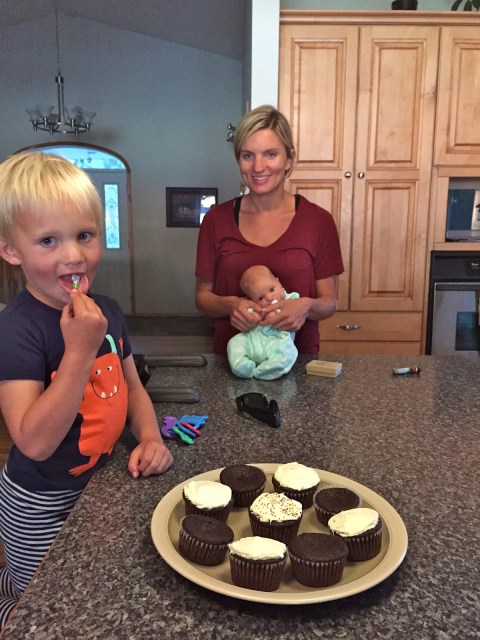 Brooks licking the icing off off of my cupcakes that Karla made for my birthday!