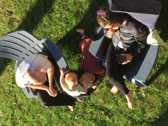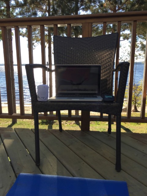 Multi-tasking – on-call for Henry, on-call for the hospital and trying to do something for myself (yoga on the deck) at the same time!