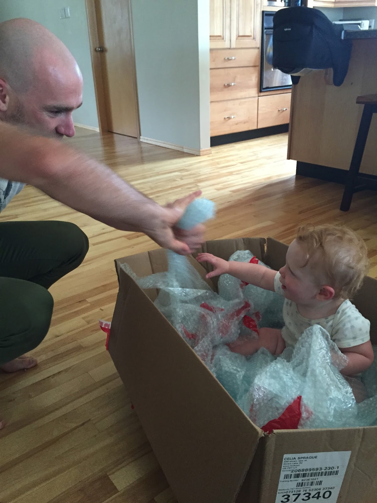 Uncle Johnny playing with Henry with the IKEA bubble wrap