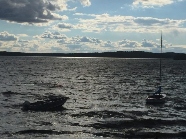 Blake and our friend Andrew windsurfing in the cool September water