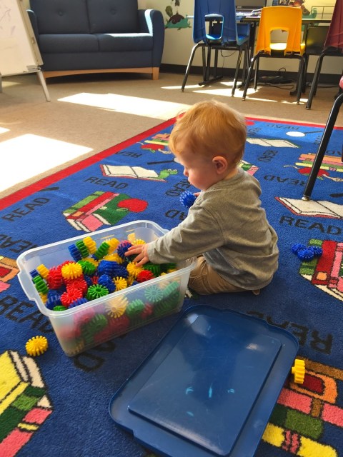 Playing with all of his toys