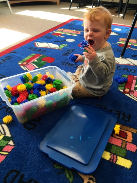 On a date with Mom – we went out for lunch just the two of us, then headed to the library to play and read!