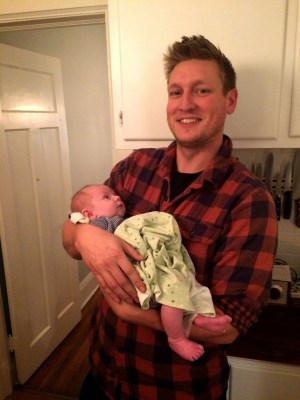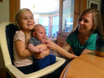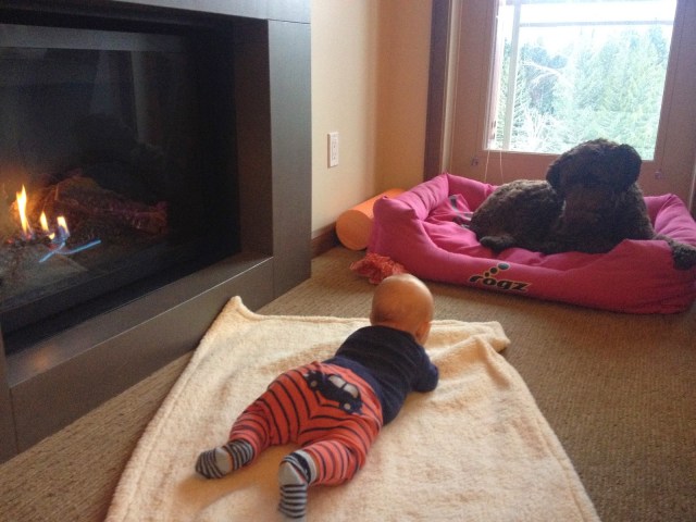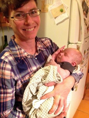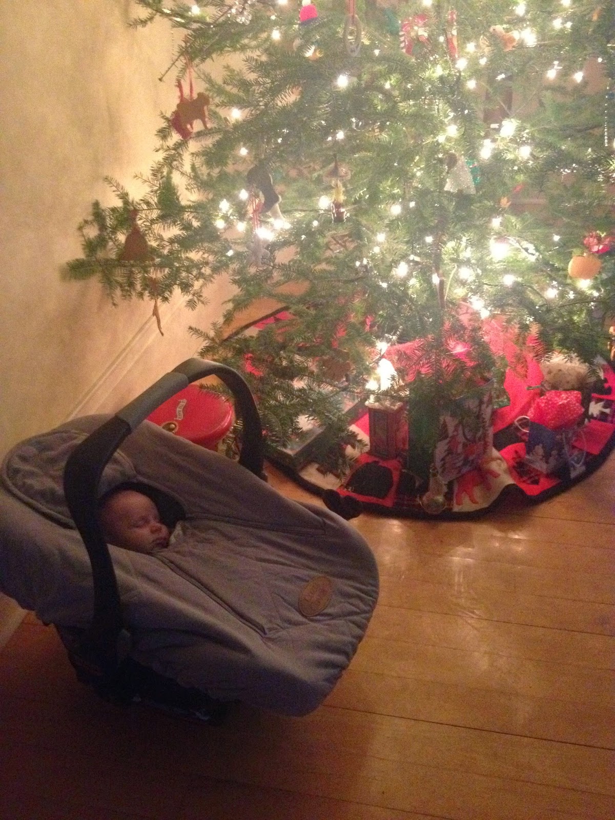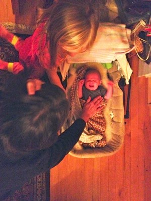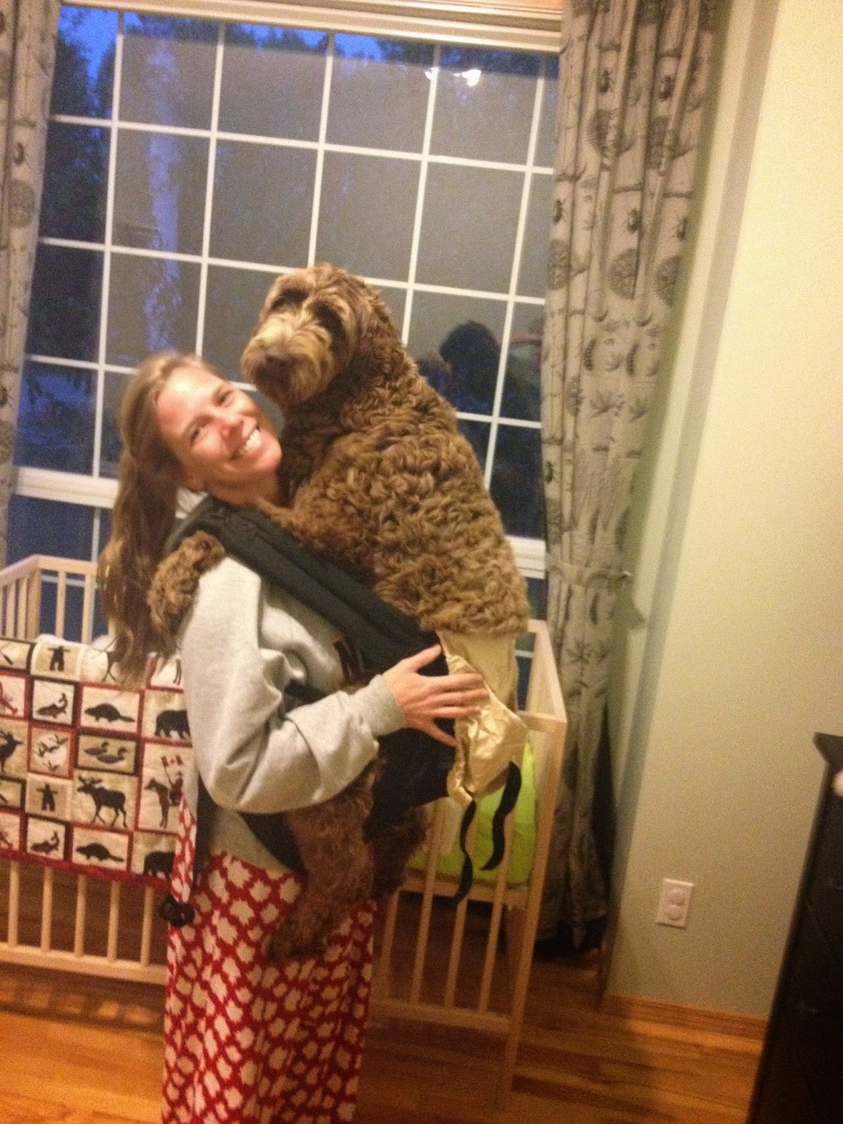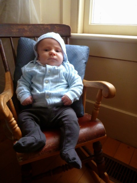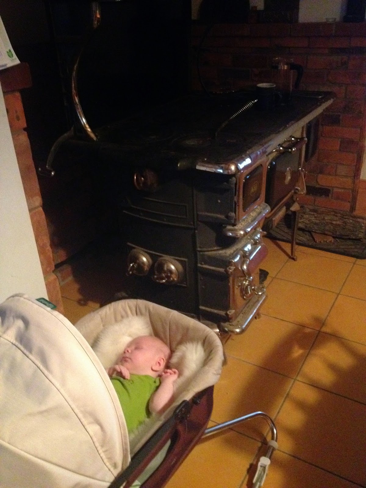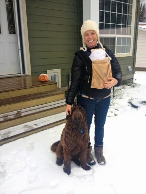 It’s 6:45am. With Henry in the sling, we sit by the woodstove in my parent’s kitchen in Muskoka  – Ada at my feet. We have been up since 3am nursing, walking the creaking farmhouse floors, pumping, burping, changing, etc. Three times I tried to put him down in the bassinet, each time unsuccessfully. I finally gave up on sleep at 5:30am, put Henry in the carrier, turned on the coffeemaker and pulled out the computer.