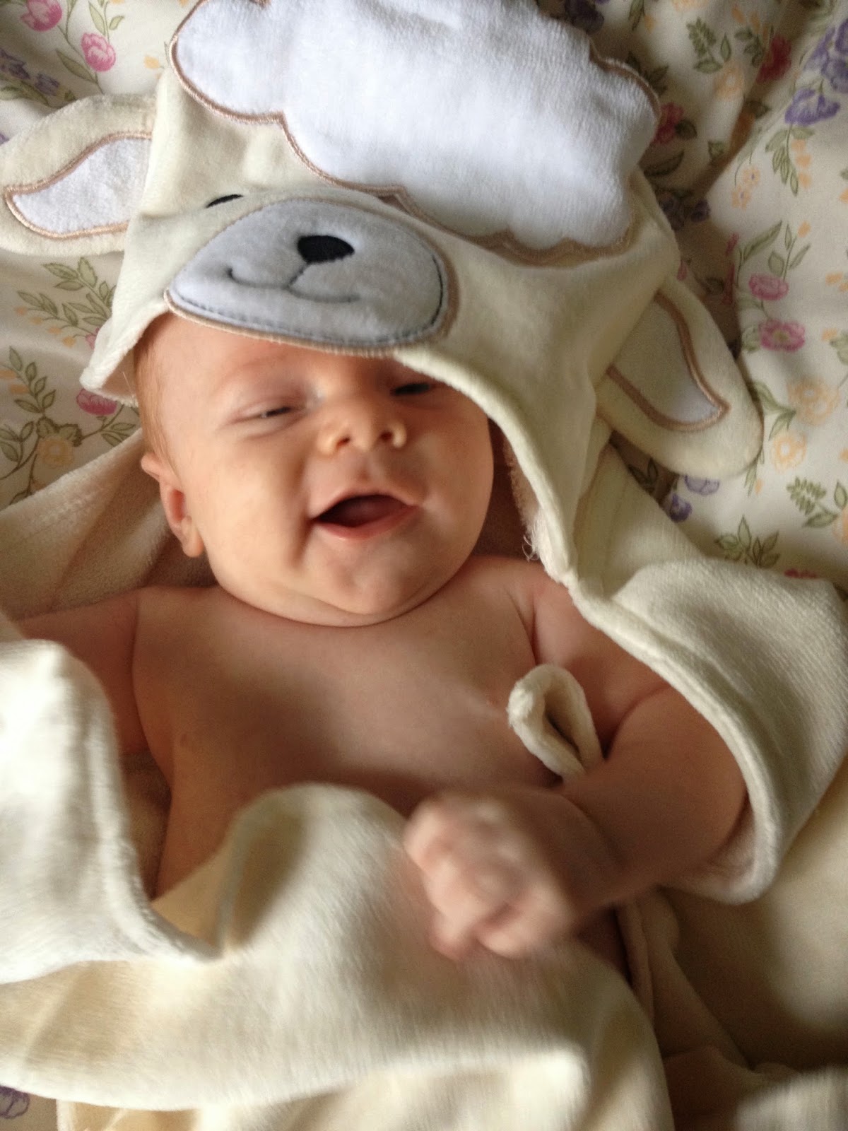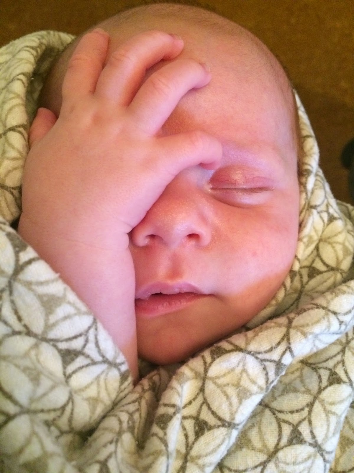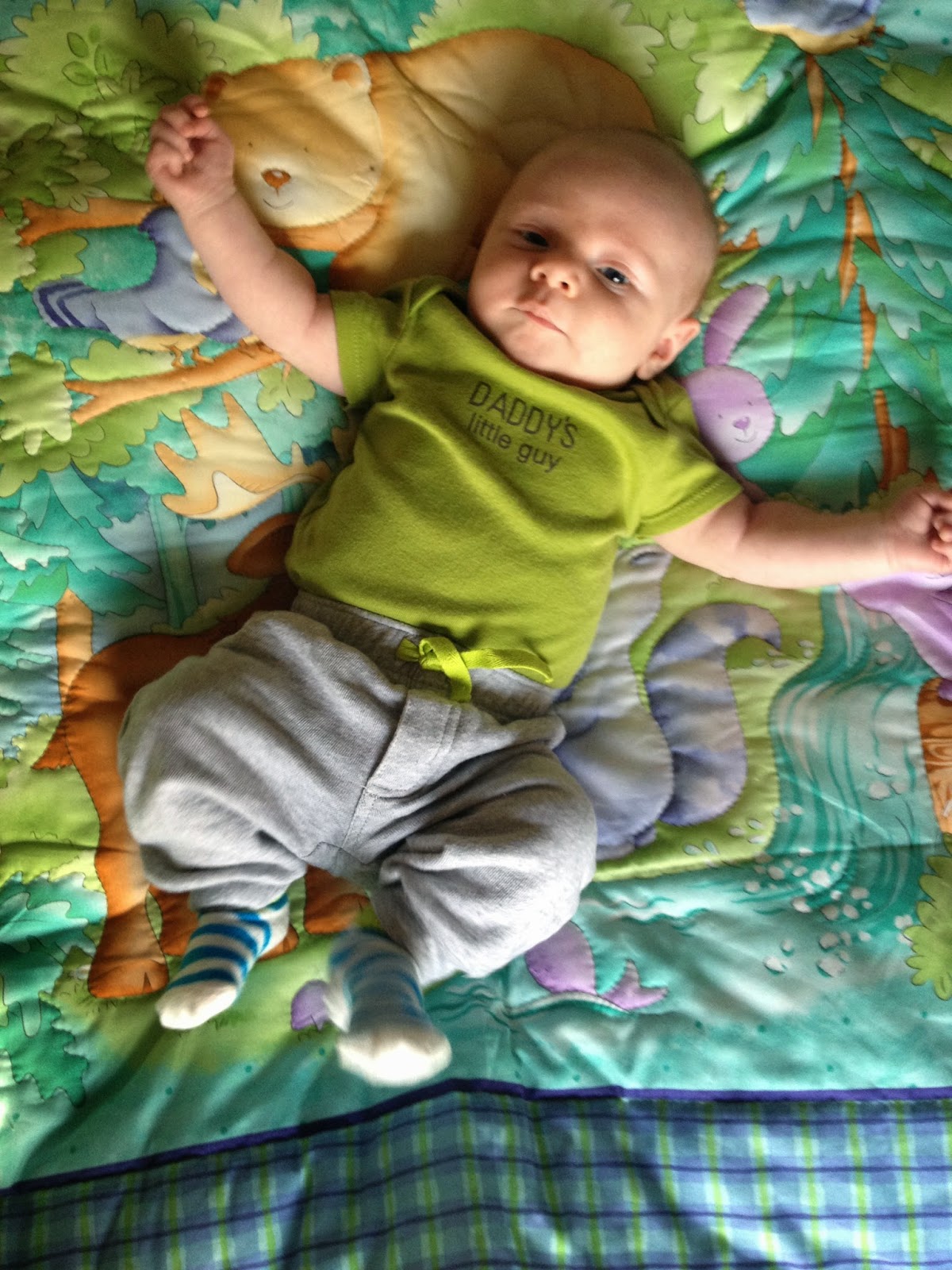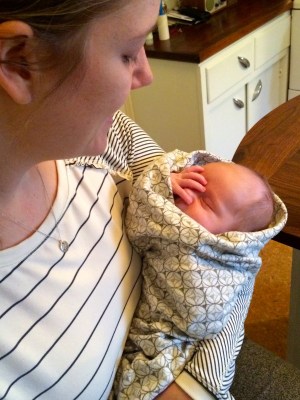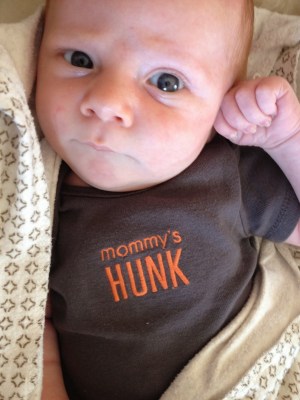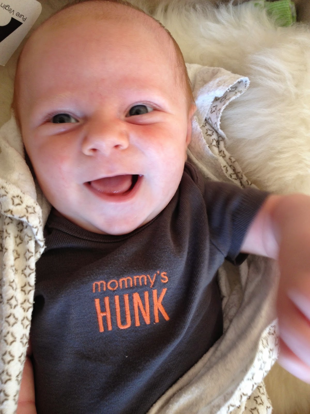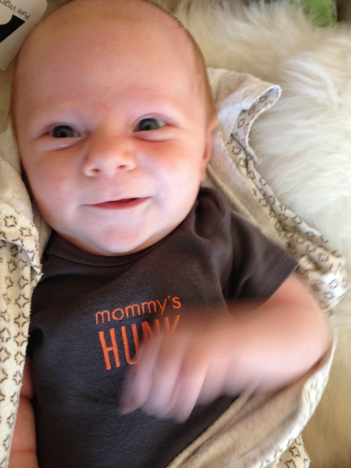 Parents of newborns the world over I’m sure can identify with the constant amazement at how each day brings something new. I hope I never forget the flipflop of my belly the first time, while singing to him, Henry looked into my eyes and smiled. Henry still snoozes most of the time and usually feeds every 4 hours, but now actually spends some time alert and happy. I love watching him take the world in with his beautiful blue eyes 🙂