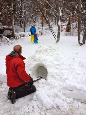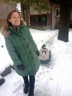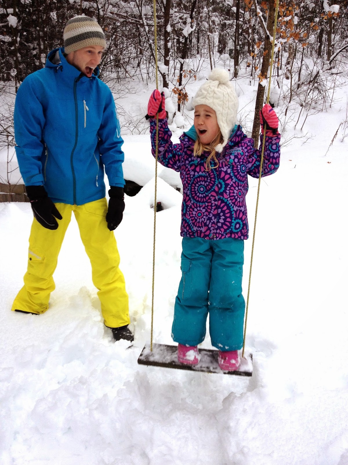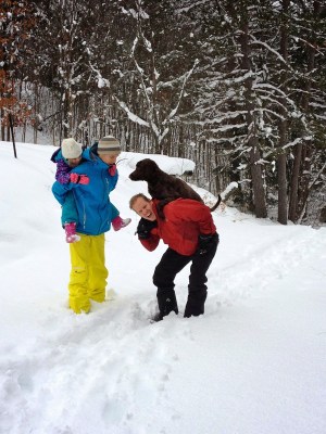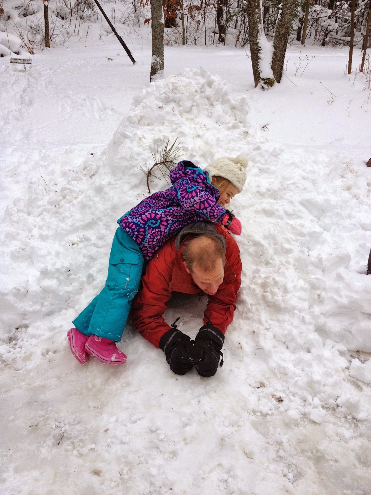 Our first weekend in Muskoka, Blake’s brother, Darren and his four year-old daughter Ava came to visit. It was a beautiful weekend with lots of snow allowing for snowfort-building, snowshoeing and snowman-making. Ava was adorable and very motherly to Henry – patting him on the back, helping to change his diaper and frequently cupping his face with her hands while planting kisses on his face.