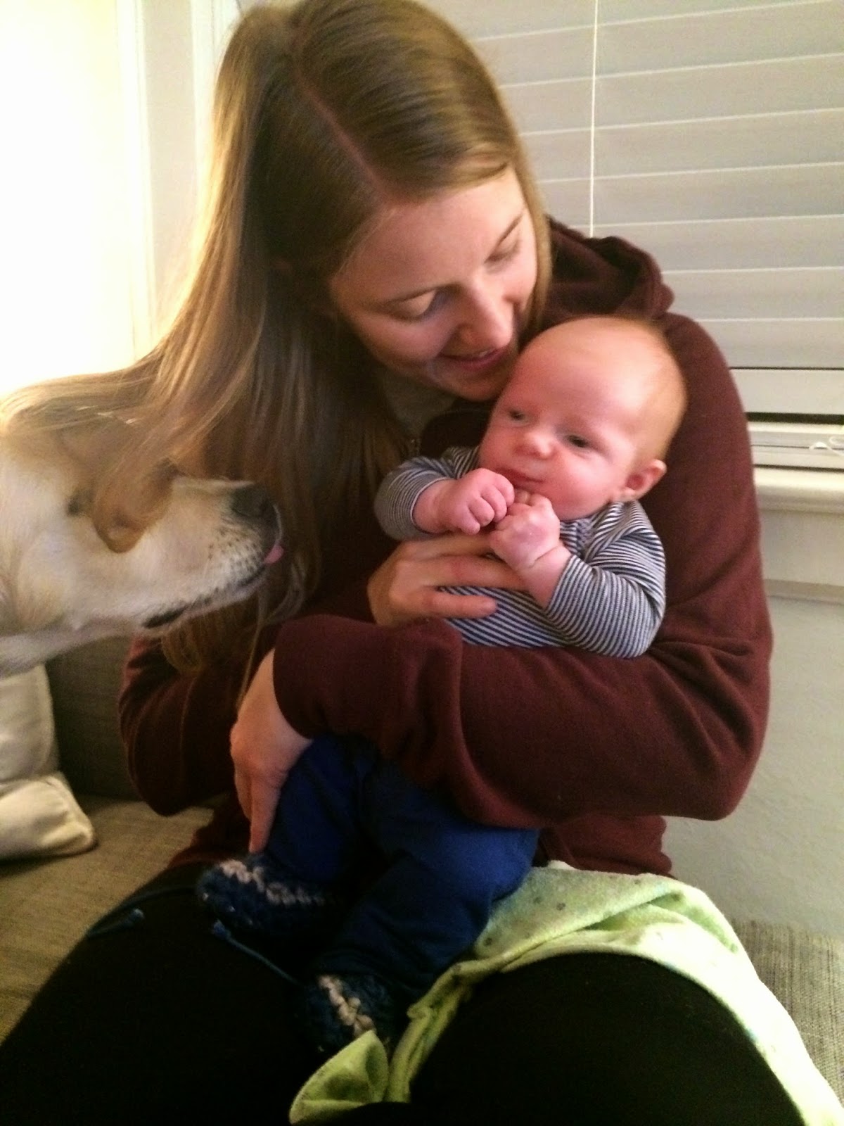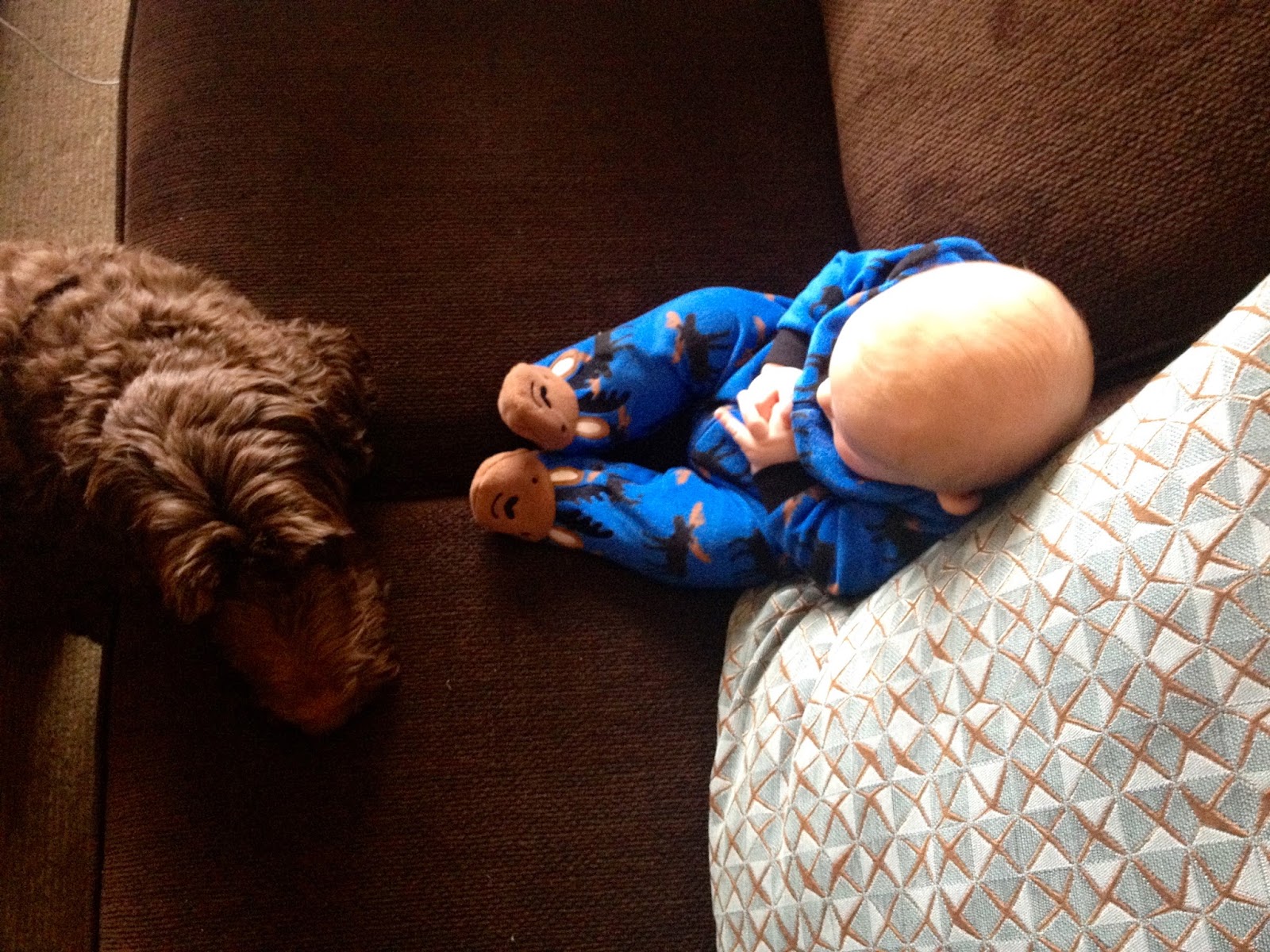 Since Megan and Catherine’s visit, Henry has grown in leaps and bounds. Beginning around 15 weeks, Henry’s whole world has seemed to open up in just a matter of days! He has really started to notice his surroundings in ways that he hadn’t before. He now will smile at Blake and I from a different room and will follow our movements about the condo. He also recently ‘discovered’ Ada, despite the fact that she has been by his side his entire life. He loves to watch her and touch her fur. It has been hilarious watching Henry discover different parts of his body like his feet and his tongue!