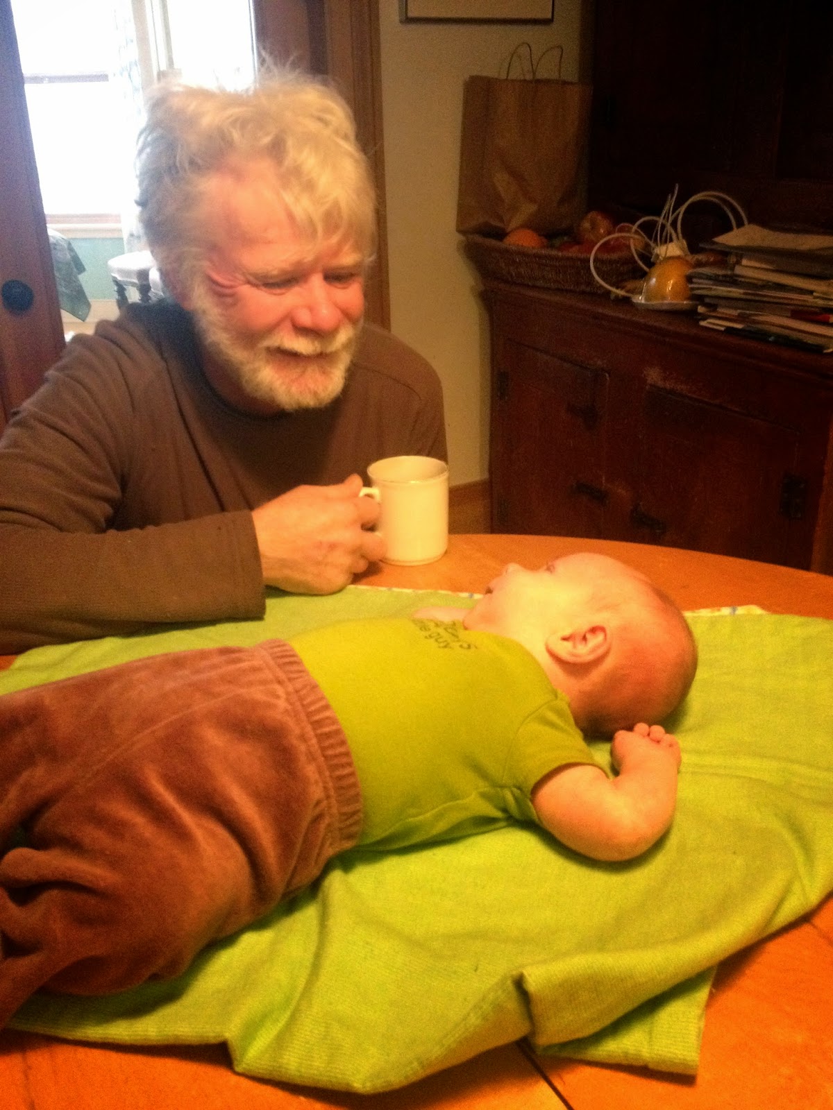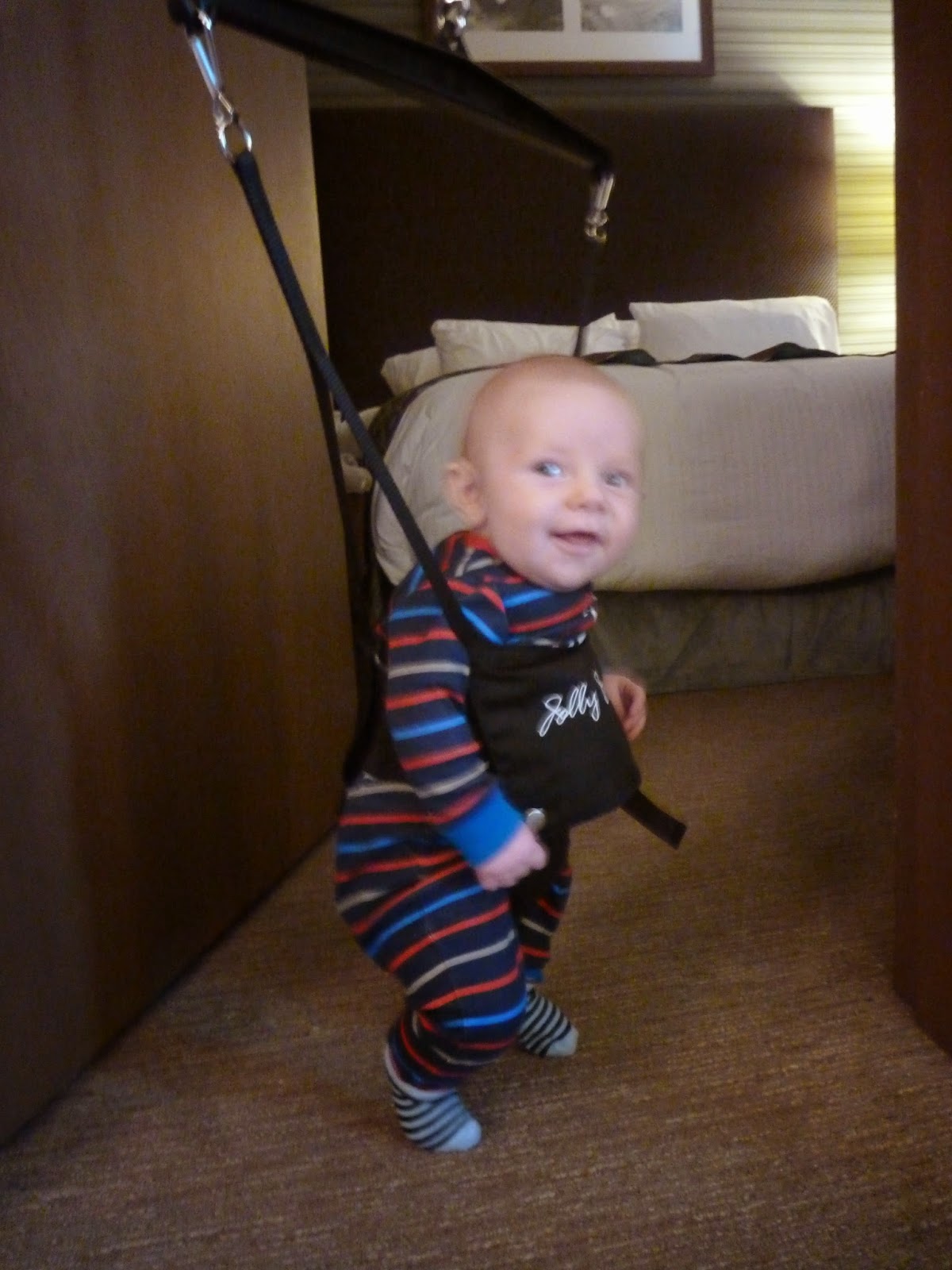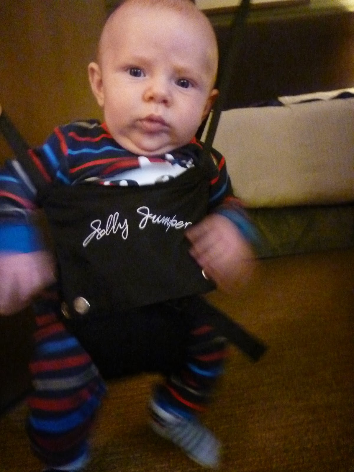 Best of all, he has consistently started to laugh, especially when you dance around with him to music. I have always loved being with him, but even more so now, it is a great deal of fun to interact with him and to discover what he likes.