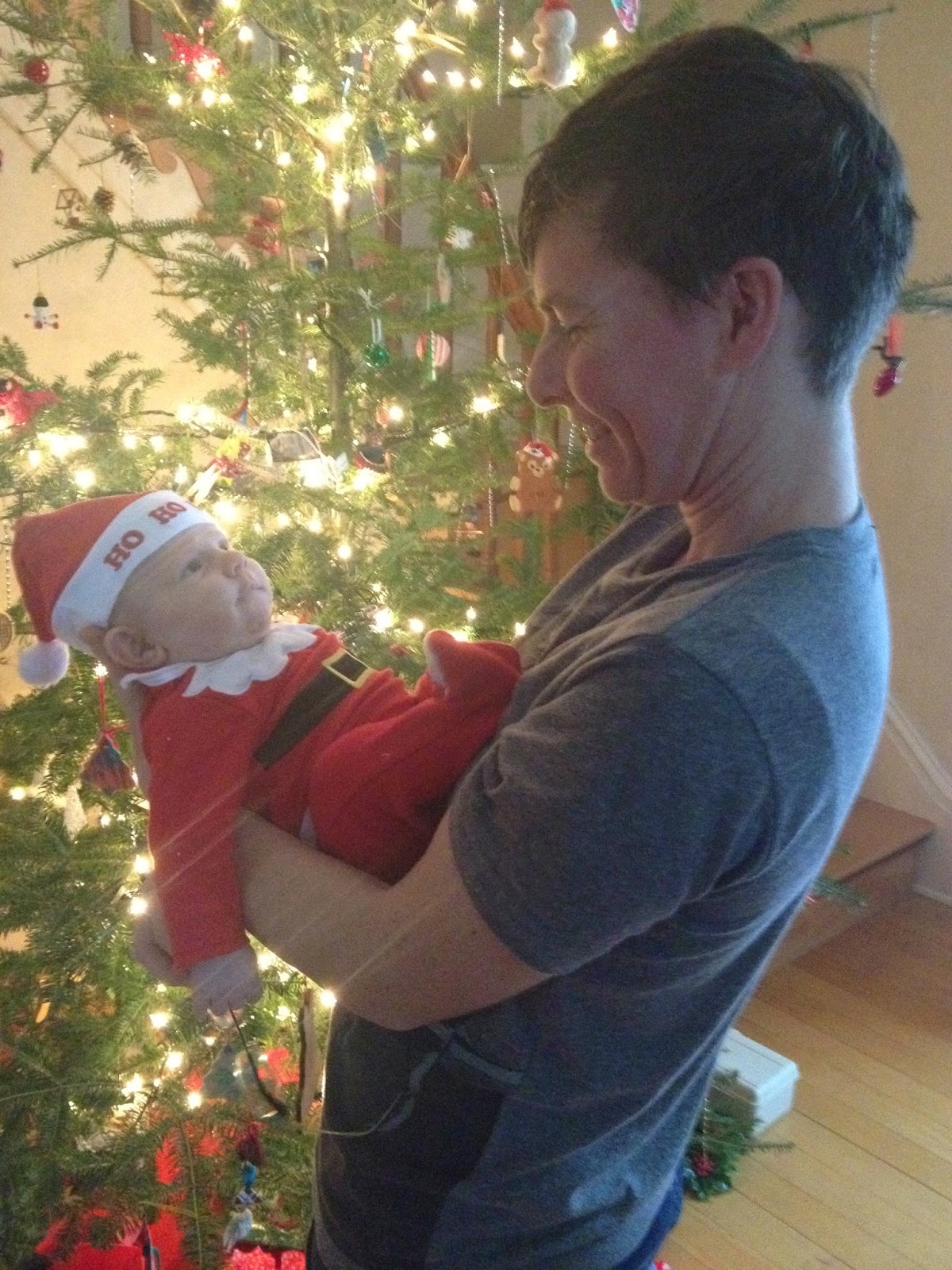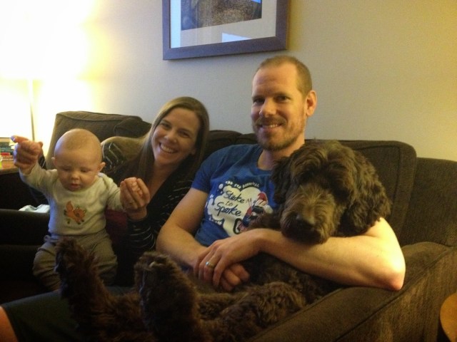Blake also adds a bit of comedic relief – his parenting style is a bit different than mine! Often I will walk by the kitchen and do a double take as Henry has been set down on the counter while Blake is playing nerf guns with our next door neighbours (Hunter – 6 and Brooks – 3). One time, I asked Blake to put pants on Henry and found him on the couch, perfectly content, in a pants straightjacket! Another time, Blake had just cut his hair and presented me with a baby in a wig 🙂