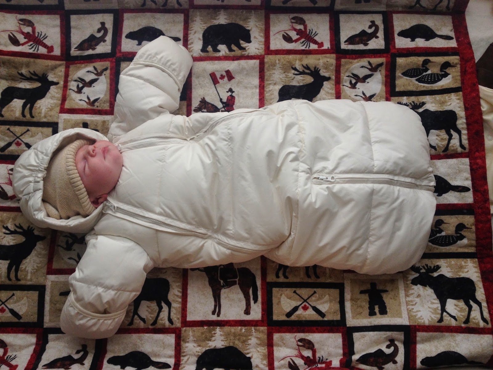 The week before we were scheduled to leave Sioux Lookout for my maternity leave adventure, the weather had decidedly turned wintery. Our beach transformed into a blanket of white and patches of ice floated in the shallow bay. Abandoning our stroller, we continued our daily walks with Henry snuggled into the adorable snowsuit given to him by our neighbours.