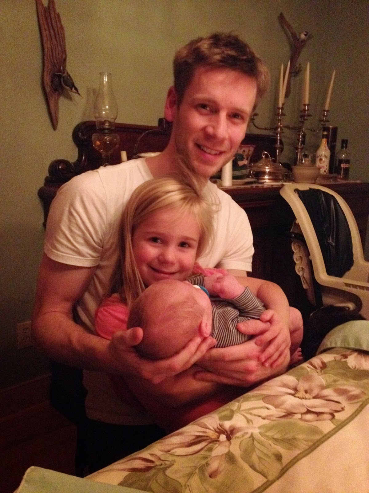 | Hanging out at home with Ava, Uncle Darren and Uncle John |