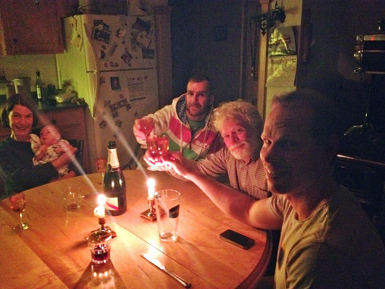 | Toasting Henry’s arrival with champagne on the first night that we got to Bracebridge |