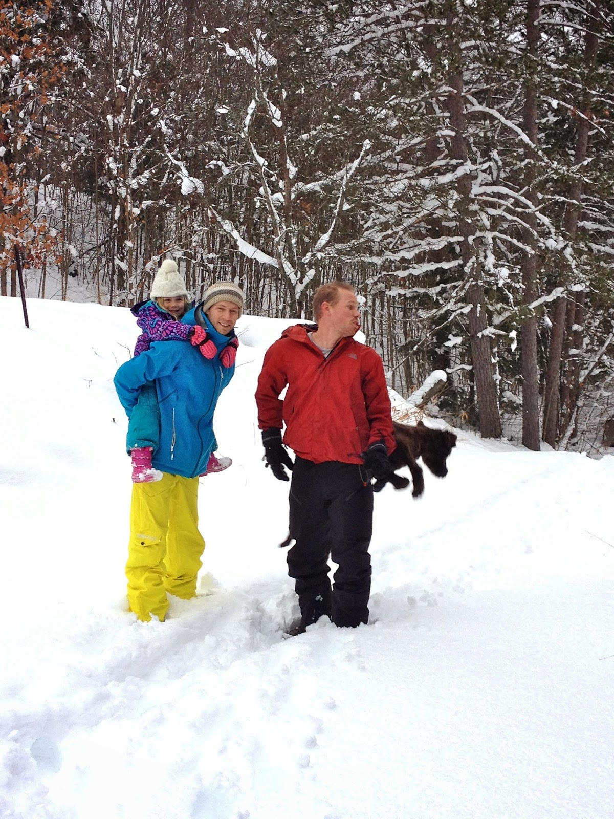 Back in Muskoka, with the snow falling again, the paces of day-to-day life are pretty blissful. Mornings are drawn out with cups of coffee and snuggles by the woodstove and evenings are spent visiting with my parents and brother and games of Settlers of Catan. Having my Mom help out with Henry has also been fantastic. Blake and I have had a few outings just by ourselves which, to the non-parents out there, doesn’t seem too exciting, but even an hour at the gym or a lunch out without Henry have been quite special 🙂