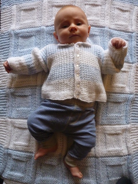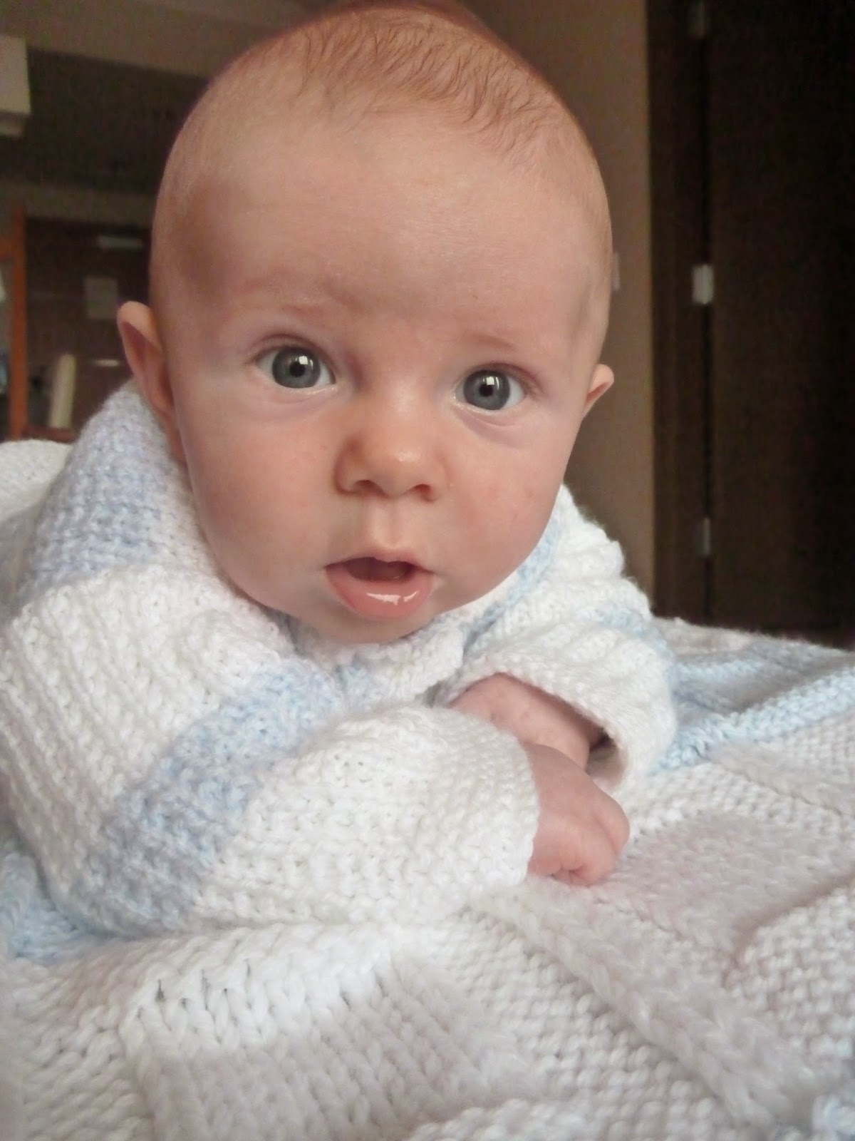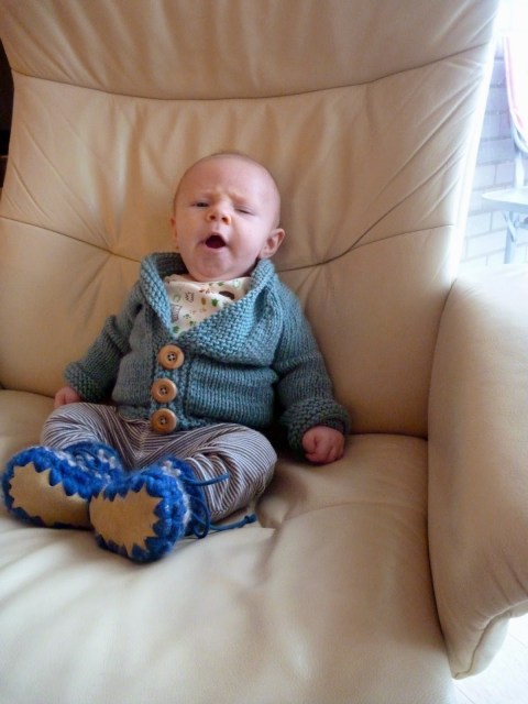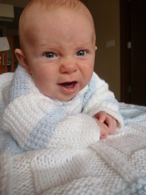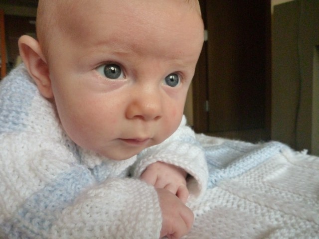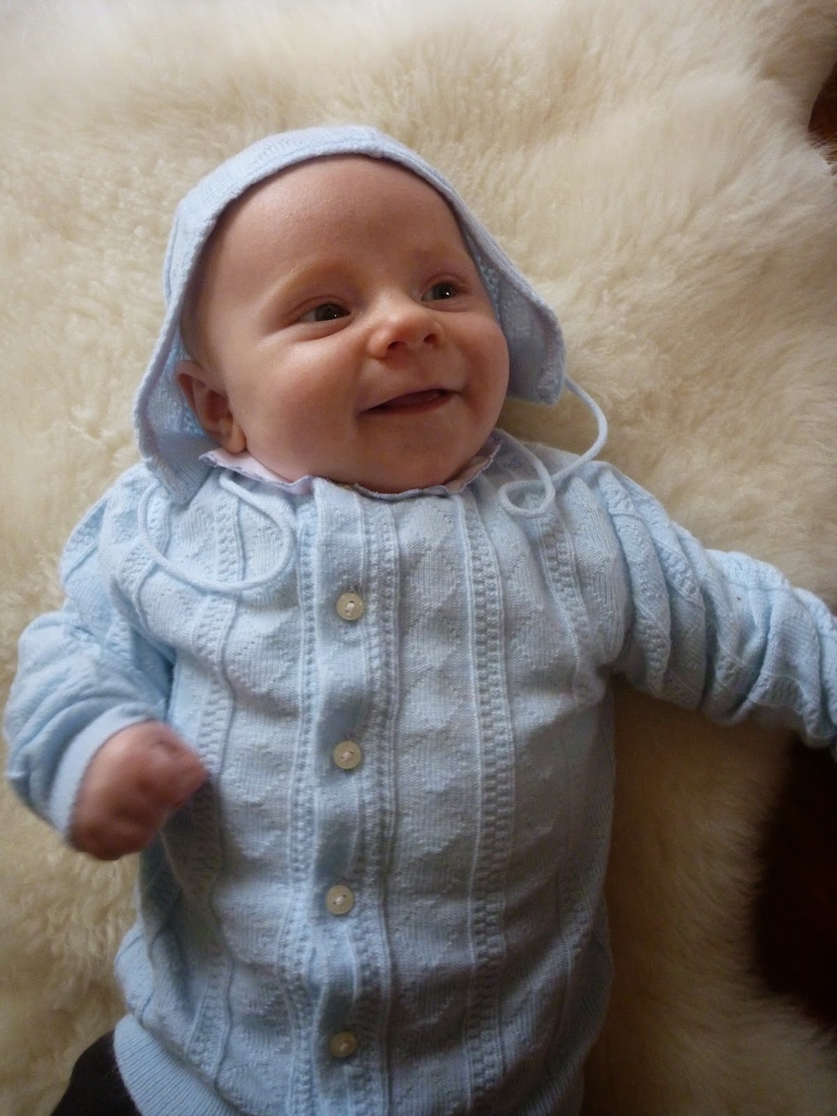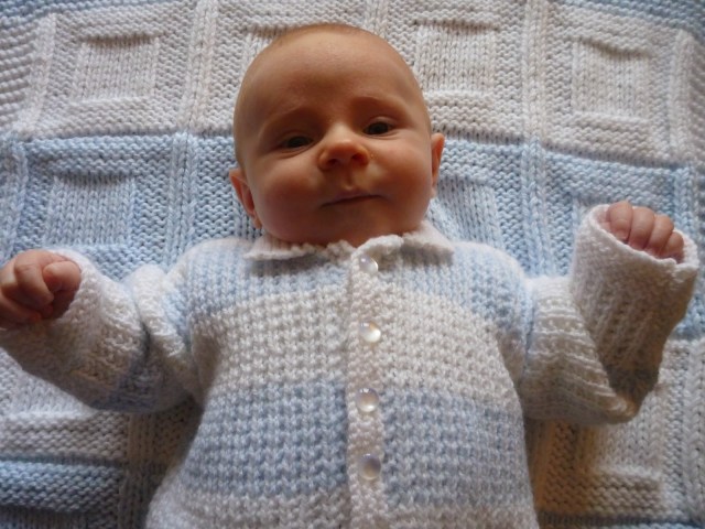 | Photoshoot wearing the cutest knitted outfit made by Blake’s Grandmother for him when he was a baby |