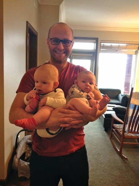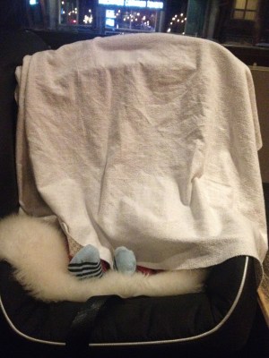 On night #1, Chris and Kelly arrived with Walter. We were so excited to see them! After dinner, Walter went down for bed in a record 5 minutes, while Henry’s usual night-time routine took at least 25-30min. Kelly and Chris schooled us in the plan of attack for the night – when Henry woke up, we were to wait 10 minutes, then go into the room and rub his belly while ‘shushing’ him back to sleep. We were to do this every time he woke up with the exception at the 4-hour marks which were usually his nursing times. Oh, and we took away the soother and swaddle – our sleep-time staples!