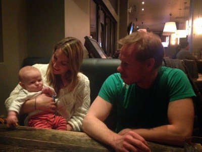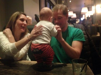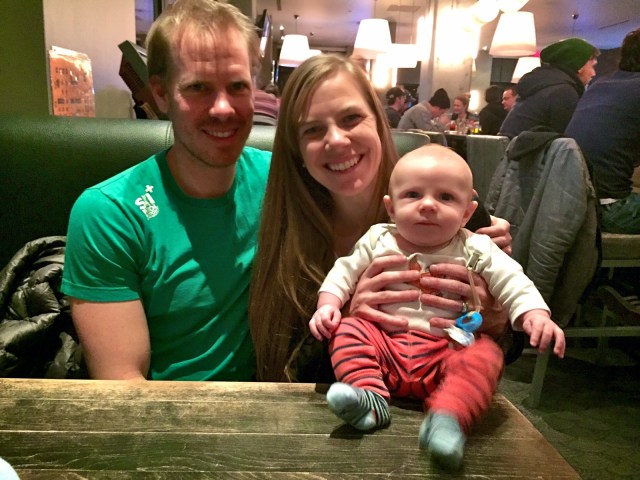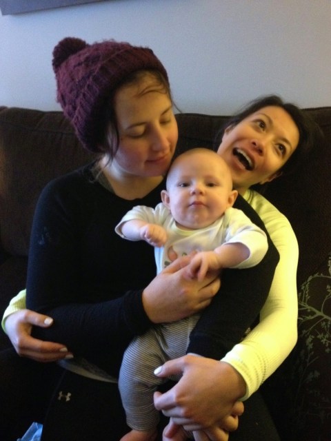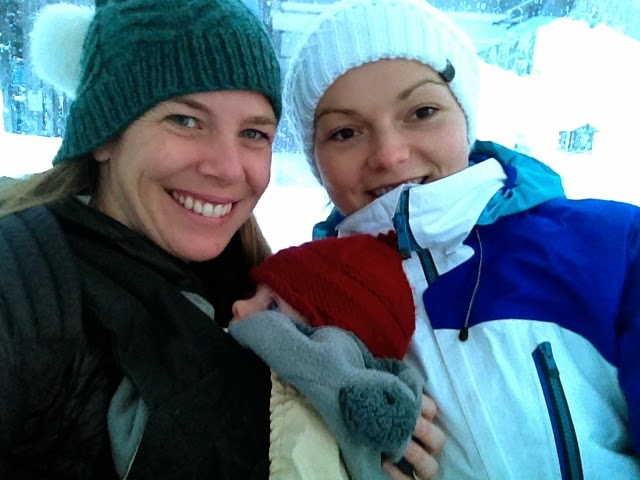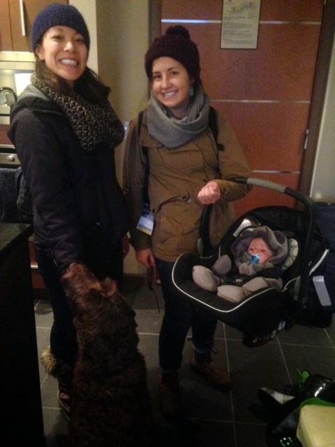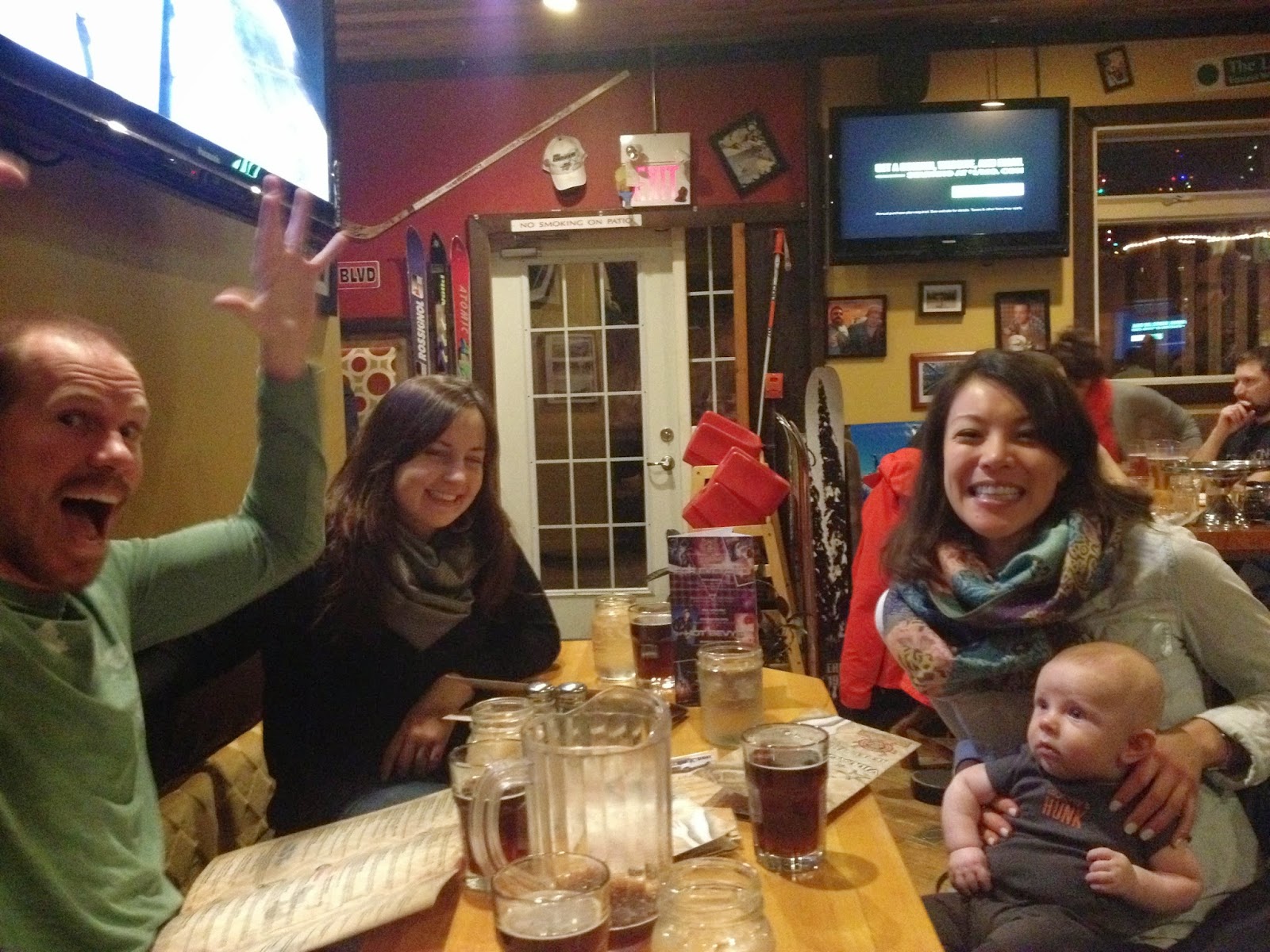 When we first decided to come out to Revelstoke, Blake made up a Google Calendar and sent it out to our friends asking them to book themselves into our guest bedroom. The days quickly filled up and the first of our visitors began mid-January with the arrival of our friends Courtney, Matt and their dog, George. At the same time, we were reunited with a number of the ‘R2s’, a group of fun-loving physicians and their partners who did their residency training in Kelowna a year ahead of myself. Our social calendar began to get busy with dinners out at the Village Idiot (the local pub), at our condo and at friends’ homes. Although I was happy to get out and visit, it was also a challenge to balance our social lives with Henry’s sleep schedule. Fortunately, he was extremely patient with us and was happy to go out and party while sleeping or snuggling in the Ergo carrier.